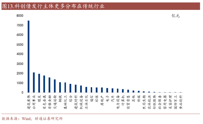 过去高评级主体、央国企是科创债券的绝对发行主力,地方产投平台也有发行。分地区看,经济大省科创债发行活跃。分行业看,此前科创债主要分布在传统行业,比如建筑、公用、煤炭、有色等,科技型企业发行规模还未提速。