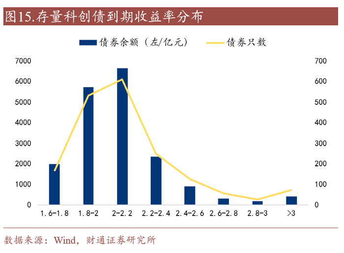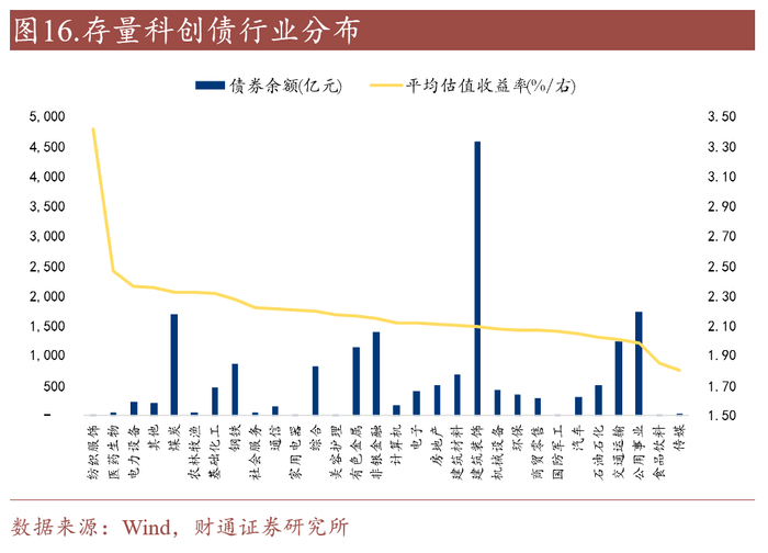 分行业看,存量规模和平均估值较高的科创债主要分布在煤炭和钢铁,但平均估值也在2.4%以下。