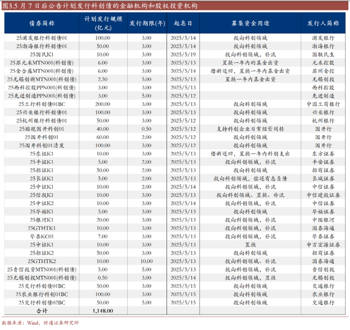 5月7日,潘功胜在国新办发布会上表示,债券市场“科技板”相关政策和准备工作基本完成。随后多个部门发布推动科技板建设的政策措施,多家企业公告发行科创债。