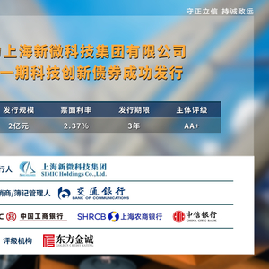 近日,由东方金诚评级的“上海新微科技集团有限公司2025年度第一期科技创新债券”(以下简称“本期债券”)在银行间债券市场成功发行,成为科技创新债券政策推出后的全国首批项目之一,也是上海市首只纳入创新试点的科技创新债券。本期债券发行规模2亿元,发行期限3年,发行利率2.37%。