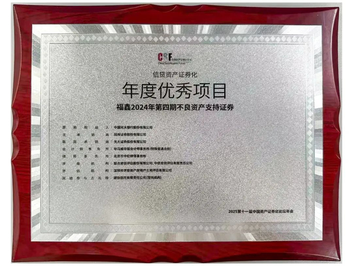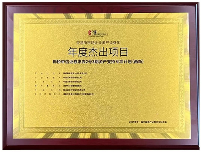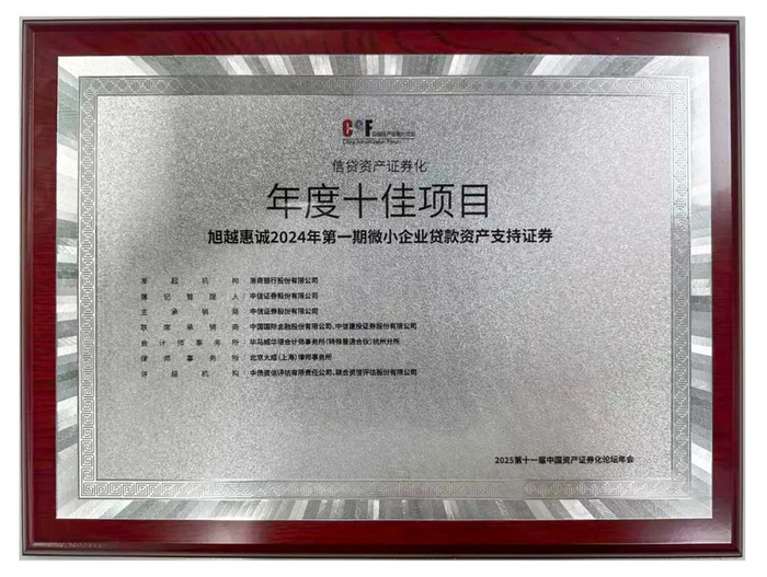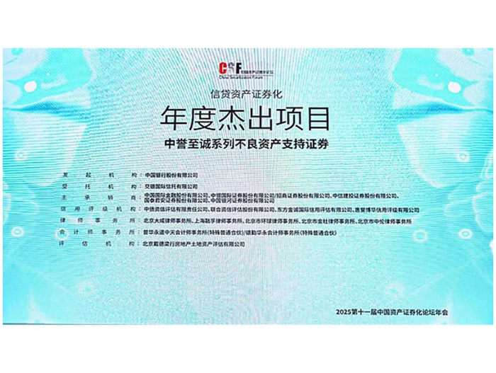 2025年5月27-28日,第十一届中国资产证券化论坛(CSF)年会在北京成功举行(以下简称“CSF论坛”)。联合资信凭借资产证券化评级的专业能力,广泛的市场覆盖率及突出的创新能力,荣获第十一届CSF论坛“年度杰出机构”嘉勉。同时,联合资信参与的多个资产证券化项目分获论坛各类别奖项,以下为具体获奖情况: