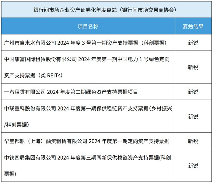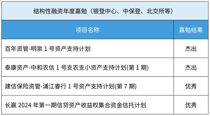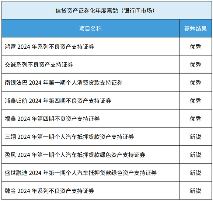 联合资信深耕资产证券化领域,不断创新产品理念及方法,凭借领先的评级技术和良好的投资人服务,在资产证券化领域始终保持行业领先地位,多年蝉联中国资产证券化论坛“年度杰出评级机构”荣誉。2024年,联合资信承做多项资产证券化项目首单,在地区乃至全国范围内促进了资产证券化领域的产品创新,为发行人和投资人提供了多维度、高质量的评级服务,得到市场各参与方的肯定与认可。