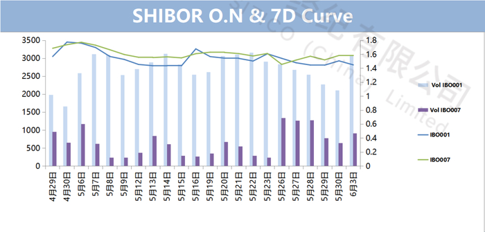 存单一级市场,六月第一个交易日整体交投稳定,具体如下:1M期限,股份制1.58%位置询量,个别大行1.65%位置询量,均需求寥寥;3M期限,个别大行1.68%位置发行,吸引少量买盘关注,国股在1.67%位置仅个别名字募集到一定需求,AAA城商1.70%附有所募集;6M期限,大行1.66%、国股1.65%位置参与询量未有募集,AAA城商行1.70%-1.73%区间陆续发满;9M期限,大行股份制1.68%询价,无人问津,个别AAA城商1.73%募集少量;1Y期限小部分大行国股提价至1.71%后吸引到一些需求,AAA城商1.73%-1.76%区间募集良好。