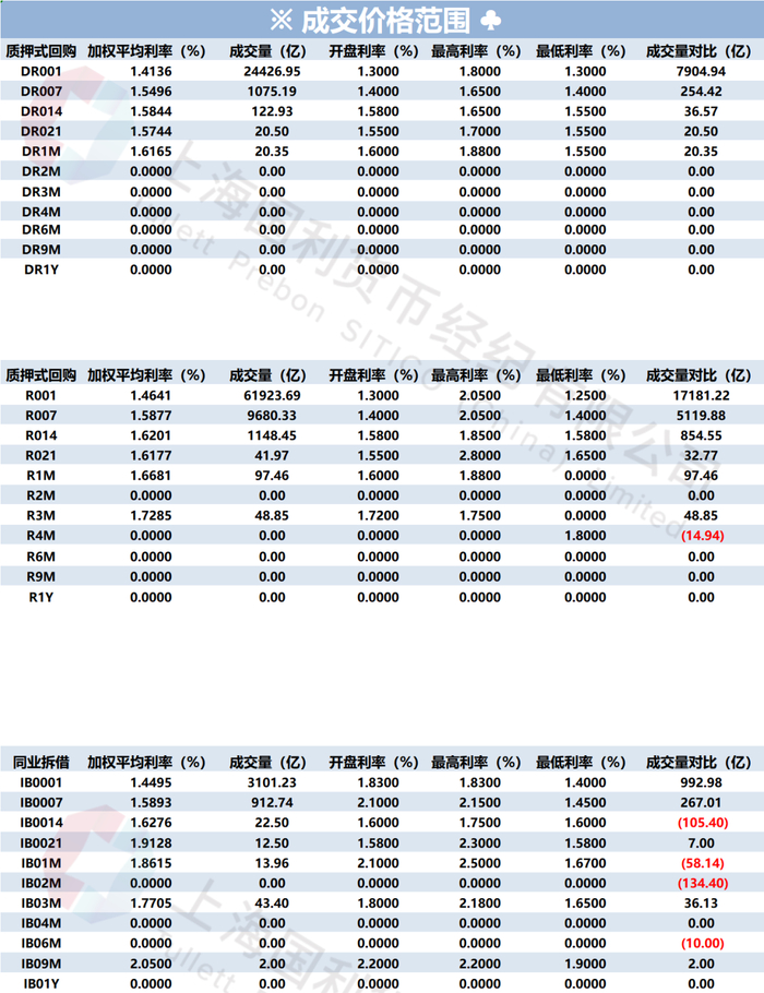 境外市场,隔夜主要成交在4.32%-4.30%;一周报价在4.38%-4.35%,成交于此区间;两周报价在4.42%-4.38%;一个月报价4.55%-4.48%,市场融出兴趣集中在4.51%附近且成交;两个月报价4.60%-4.50%;三个月报价4.60%-4.52%,市场有卖盘兴趣集中在4.60%-4.56%;六个月报价在4.59%-4.53%,市场有卖盘兴趣集中在4.59%附近;九个月报价4.59%-4.50%;一年期报价在4.52%-4.45%,市场集中成交在4.51%-4.49%。