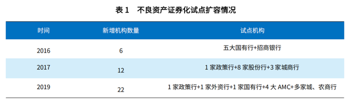 自2016年不良资产证券化试点重启以来,市场参与主体日益丰富。首轮试点仅涵盖工商银行、农业银行、中国银行、建设银行、交通银行及招商银行六家大型银行。随后,2017年第二轮试点扩围,部分政策性银行、股份制银行和城商行加入其中;2019年再次扩容,新增包括外资行及四家资产管理公司(AMC)等多家金融机构,目前共计40家机构获得发行资质。