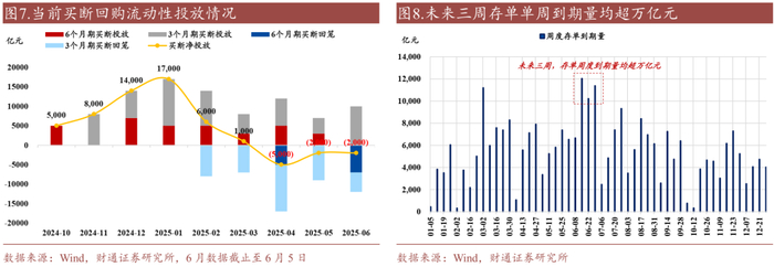 此外,6月有7000亿元的6个月期买断回购到期,5000亿元的3个月期买断回购到期,本次投放的均是3个月期买断回购,成本相较于6个月期更低。