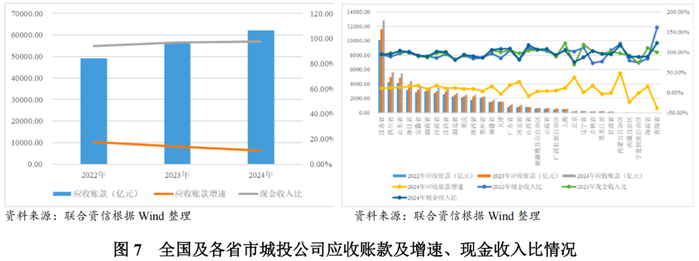 回款方面:2024年,城投公司应收账款规模继续扩大,但整体增速持续放缓;现金收入比维持较高水平。