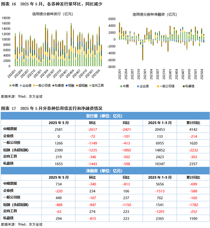 5月信用债发行量和净融资环比减少、同比增加