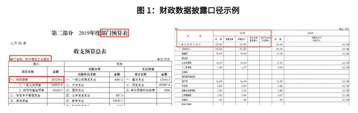财政数据口径均为全口径,而非市本级、区本级口径。其中,需要注意分辨“部门”财政数据。“部门”财政数据对于园区来说更为常见,若数据为下图左,则是部门预算表,且科目体现的是“财政拨款”,无法作为园区全口径财政数据。但也有部分园区,比如下图右,**区披露主体是管委会财政办公室,但报告内容是园区全口径财政数据,具体数据科目为“一般公共预算收入”,则可使用。