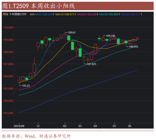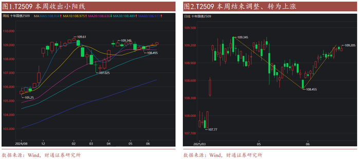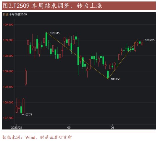 从小级别来观察,T2509在6月11日至6月16日以横盘震荡方式进行调整,形成震荡箱体,并对后续行情形成了支撑。6月11日至16日形成了震荡箱体,6月17日向上突破宣布短期调整结束,后续多次回踩109.09和109.1附近,均获得较好支撑。