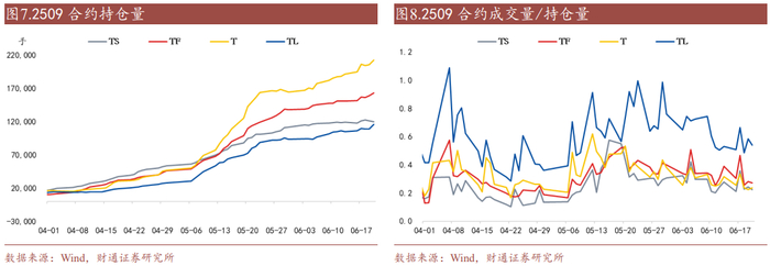 截至6月20日,国债期货2509合约持仓量均增加、10年期持仓量继续上升。