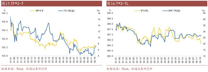 本周09-12合约价差表现分化,2年、30年价差回落,5年、10年价差持平前值。