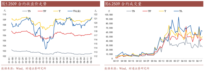 本周国债期货成交活跃度整体回升。本周各期限国债期货2509合约日均成交较上周不同程度回升、仅10年期主力合约成交小幅下滑,2年、5年期放量更明显。从成交量/持仓量来看,各期限均有所下降、2年期略有回升。截至6月20日,国债期货2509合约持仓量均增加、10年期持仓量继续上升。