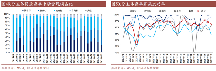 (1)分主体来看,国有行存单净融资仍是负值,录得-52.6亿元,已经连续两周为负值,整体展现出供给侧管理。