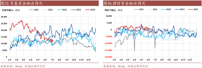 (2)(货基 + 理财子)日均融出有所回落至1.00万亿元(前值1.10万亿元),其中货基日均融出回落至1.21万亿元(前值1.23万亿元),理财日均融出-0.21万亿元(前值-0.13万亿元);