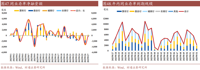 ②净融资绝对规模视角,除去城商行和农商行,其余银行存单净融资为负值,国有行存单净融资转为-52.6亿元;