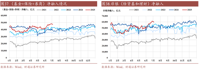 (3)资金面延续宽松,但由于股债跷跷板对情绪的压制,券商和其余非银机构增加净融入,其余机构均减少净融入。