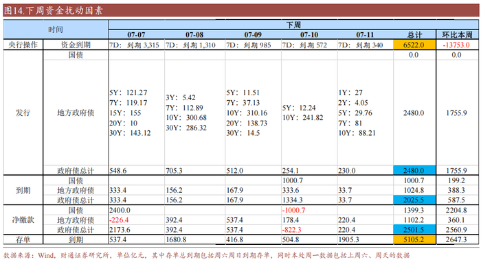 下周(07.07-07.11,下同)资金和存单需要关注:
