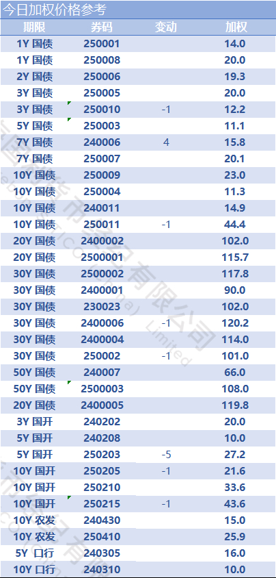 价格方面今天券面下降。250010、250011、2400006、250002、250205、250215均下降1bp,250203下降2bp。