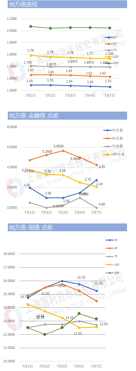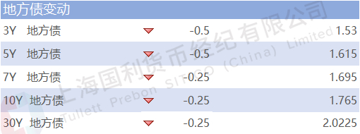 今日地方债情绪减弱,整体波动较小,整体收益率较周五小幅下行0.25bp左右。