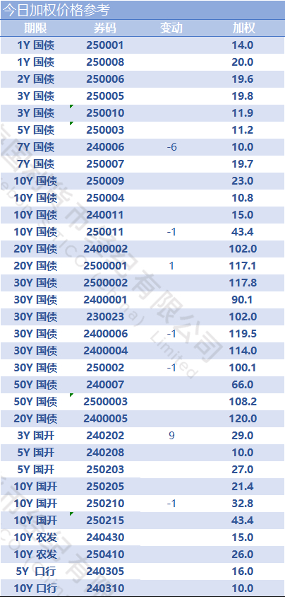 10年国债方面,250011需求开始加速,目前供应依然充足。10年国开250205和250210依然以续做为主,新增一般。30年国债方面230023新增需求依然在持续增加,供应开始略显紧张。2500002午后有部分新增,供应充足。2400006需求不温不火,依然呈现缓慢减少趋势。