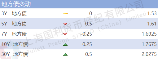 金融债方面:1年国开230202成交在1.46-1.47;1年非国开250411成交在1.45-1.465;3年国开240203成交在1.58-1.595;3年非国开250403无成交;5年国开250203成交在1.58-1.595;5年非国开250405成交在1.64-1.645;7年国开220220成交在1.717-1.725;7年非国开240307无成交;10年国开250205成交1.729-1.7375;10年非国开250410成交在1.76-1.77。
