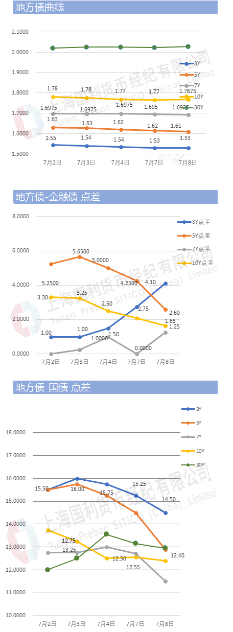 今日地方债继续随市场缓步回调上行, 超长上行0.5bp左右。