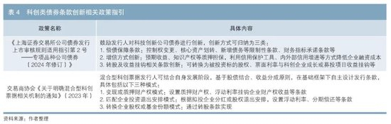 交易所市场的科技创新公司债券、银行间的混合型科创票据的相关政策均鼓励发行人在债券的发行方式、期限结构、利率确定、赎回或转换选择权、增信方式等方面进行创新(见表4)。