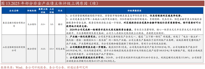 截至2025年7月12日,除了中航产融和榆次农商行之外,其余金融债评级调整均为上调。