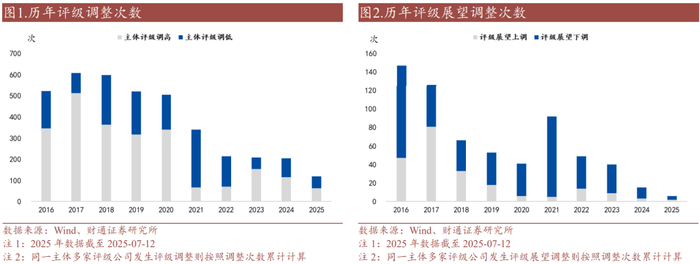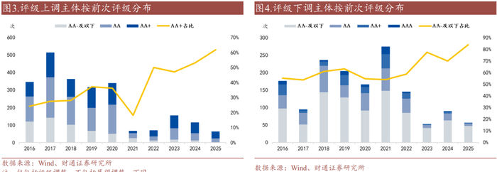 我们关注2025年发债主体的评级调整情况,统计范围仅包括境内评级机构(不含中债)。