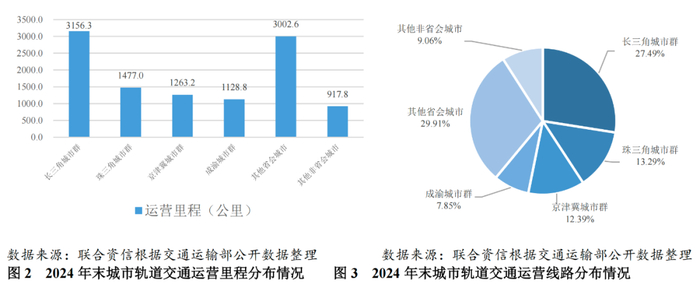 从分布看,截至2024年末,全国共有27个城市线网规模达到100公里及以上,“京津冀”“长三角”“珠三角”和“成渝”城市群运营线路数量合计占61.03%,城市轨道交通整体呈现“东密西疏”的梯度发展特点。
