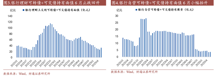 资金行为或是引起本轮转债ETF份额修复的直接原因。从6月转债市场持有人数据来看,银行理财在上交所口径下转债持有量大幅上升,银行自营上交所口径下转债持有量也明显增长。尤其是银行理财转债持有量是2024年5月以来首次月度环比上升。考虑到理财或更多通过FOF参与权益、转债市场投资,因此本轮转债ETF份额抬升的背后,理财资金或为重要推手。