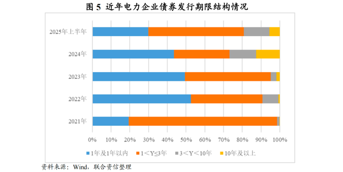 2025年上半年,电力行业企业发债规模同比增长,仍集中在高信用等级的中央国有企业和地方国有企业,以中期票据和超短期融资债券为主。随着市场利率的进一步下行以及长短期债券利率差收窄,电力行业债券平均发行期限拉长。