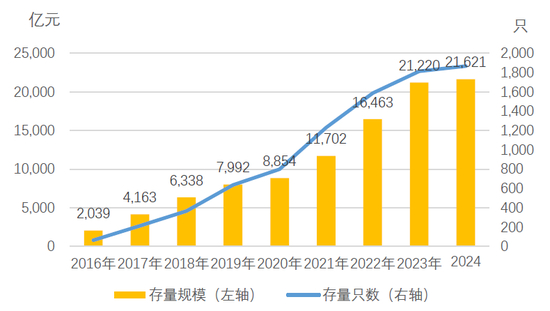 绿色债券存量规模也快速增加。截至2024年底,中国绿色债券存续1868只,债券余额合计2.2万亿元。如果考虑非贴标但实际投向绿色领域的债券,则整体“投向绿”债券2超过6万亿元。