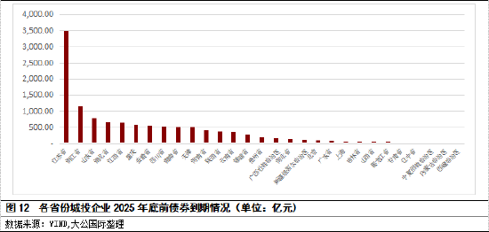 近半数存续城投债集中在2025年到2027年到期,2025年底前到期债券中AA+城投企业占比最大,12个重点省份中重庆、天津城投债年内集中到期压力相对较大,需关注债券续发情况。