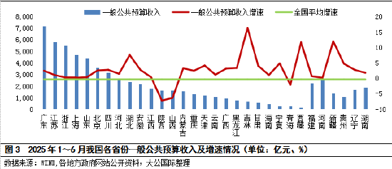 财政收支方面,2025年上半年,全国一般公共预算收入同比有所下降,全国各省份之间一般公共预算收入规模及增速差异仍较大;全国一般公共预算支出有所增长;主要受房地产市场低迷,房地产开发企业拿地意愿下降影响,全国政府性基金预算收入同比继续下降;随着扩内需、促消费等政策相互配合作用下,预计2025年下半年全国一般公共预算收入将继续保持平稳,政府性基金预算收入仍面临较大的不确定性,积极的财政政策将进一步加大财政赤字。