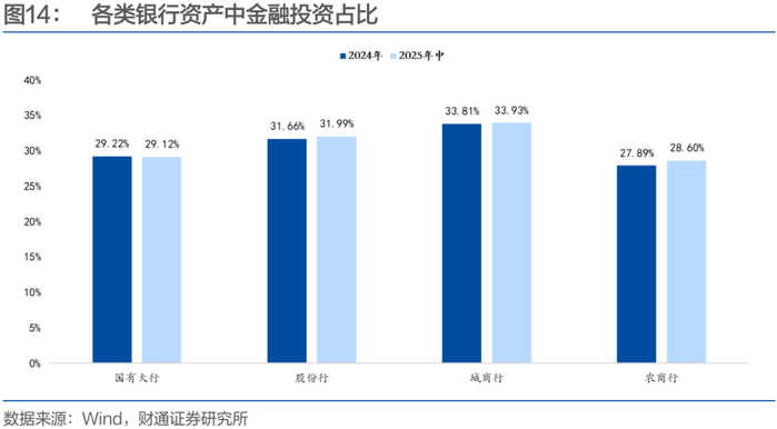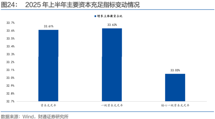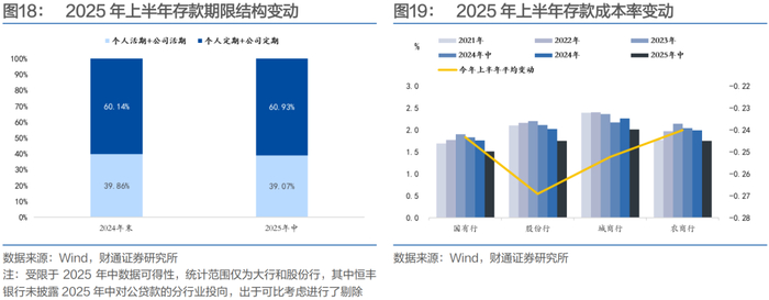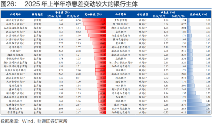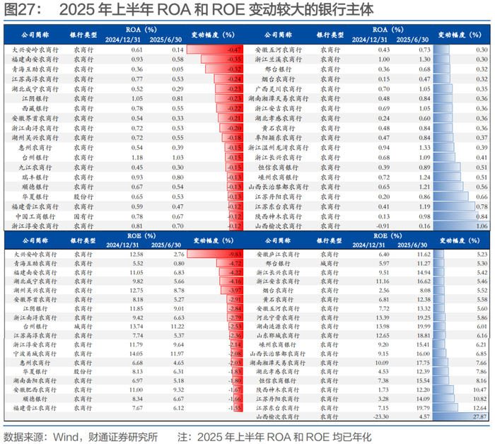 进一步的,我们以大行、股份行、城商行和农商行为样本,从个体角度观察主要银行主体的经营情况。由于部分银行未披露明细数据,故从数据可比性的角度出发,各指标对比时仅考虑同时2024年末和2025年半年报的主体。