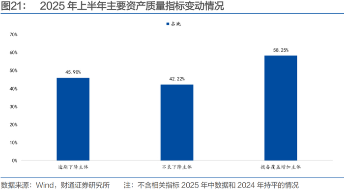 上半年银行业资产质量继续承压,一半以上的银行存在逾期贷款率和不良贷款率增长的情况,但另一方面,出于防风险的考虑,银行拨备覆盖率明显增加。