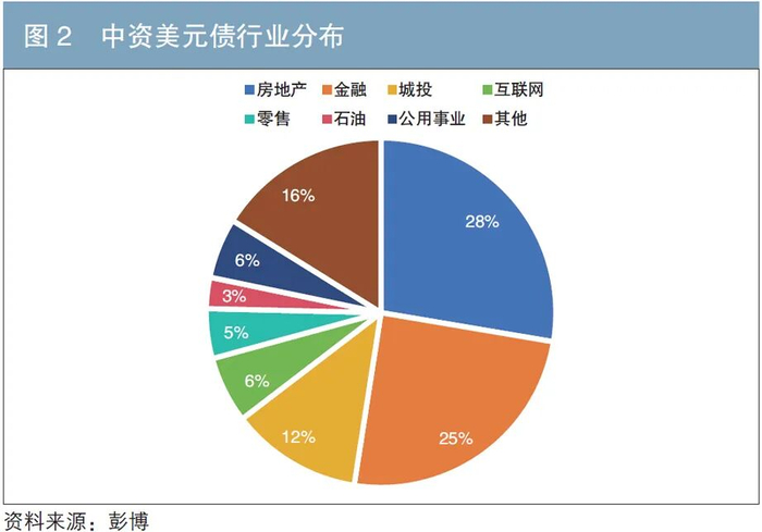 从行业分布来看,发行中资美元债的主体集中于房地产、金融和城投板块。据彭博数据,截至2025年二季度末,上述三个板块存量规模分别为1591亿美元、1427亿美元和698亿美元,占比分别为28%、25%和12%(见图2)。同境内债的行业分布类似,房地产和金融具有天然的高杠杆经营属性,城投公司主要负责的土地开发和基础设施建设业务同样要求举借大量资金,这三类主体具有较为旺盛的融资需求,成为中资美元债市场的主要参与力量。对融资主体而言,中资美元债能够拓宽主体的融资渠道,丰富资金来源,在一定程度上降低再融资难度。除上述三类主体,部分科技、媒体和通信三大领域融合(TMT)企业如阿里、腾讯等同样青睐中资美元债。由于互联网企业存在较多国际业务,需要在境外市场亮相,相当一部分互联网公司选择通过中资美元债融资。