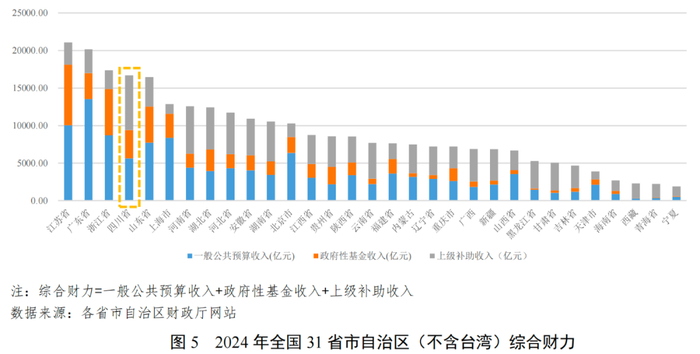 四川省综合财力规模排名全国前列。2024年,四川省综合财力较上年基本持平,在全国31个省市自治区中排名第4,居于全国前列。