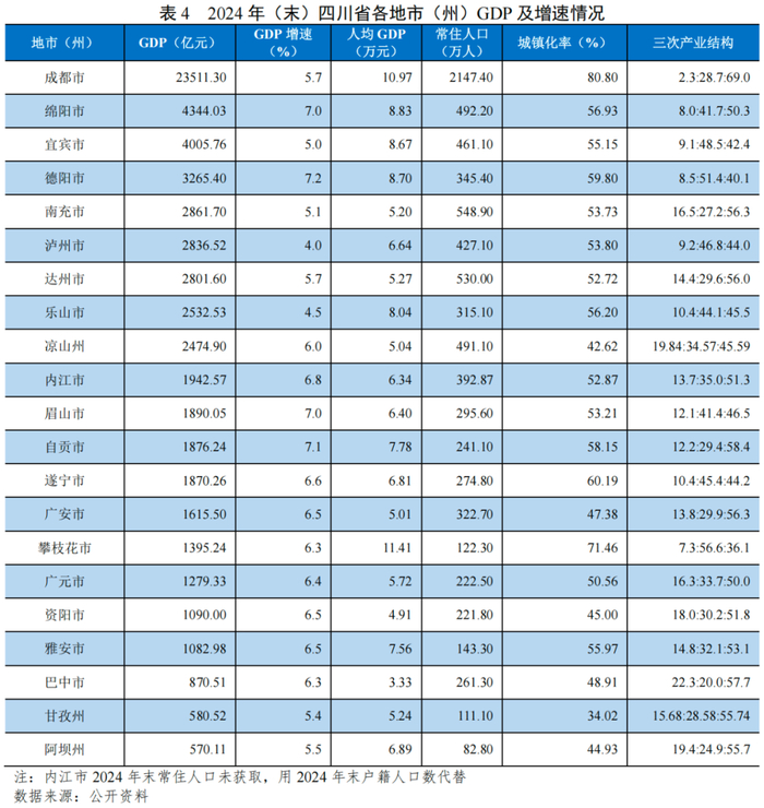[1]内江市未披露2019年末和2024年末常住人口,因此本报告采用内江市2019年末和2024年末户籍人口计算人口增长率。