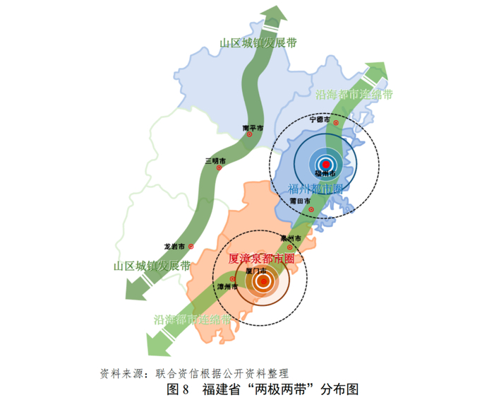 [4]山区城镇发展带由北向南包括南平市、三明市和龙岩市。