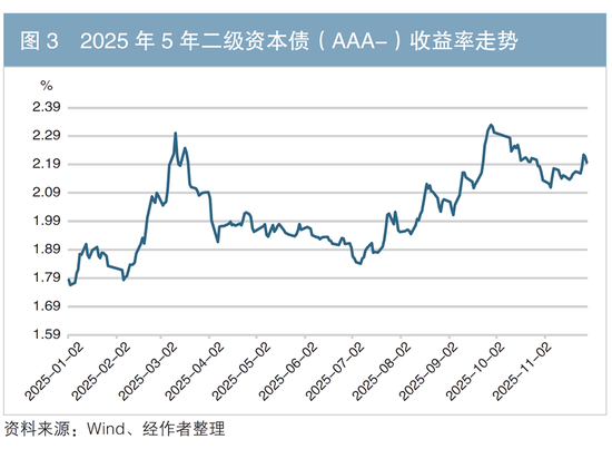 2025年初至11月末,银行次级债收益率走势大体呈现“先上后下再上”的格局(见图3)。