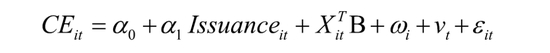 其中CEit为被解释变量,采用对数化处理过的企业碳排放量进行衡量。Issuanceit为解释变量,采用企业发行绿色债券规模进行衡量。两个核心变量均采用的是绝对规模变量,而非比例变量(如企业碳排放强度)进行回归,保持了一致性,同时模型也对企业规模进行了控制。