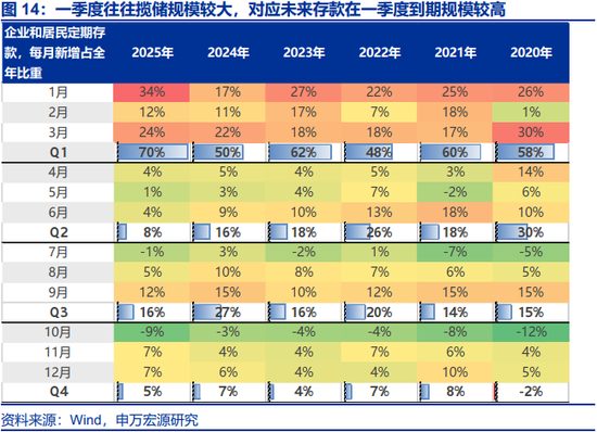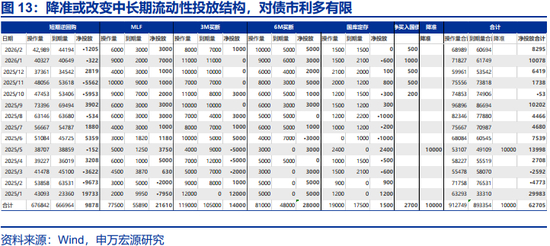 银行受存款到期重置影响,起到负债端“变相降息”的效果,但负债端久期或缩短,后续其对长债承接能力受央行投放量影响较大。定期存款往往在每年一季度高增,2022年-2025年的定期存款多以1年、3年、5年等整数年为主,则对应未来每年一季度定期存款到期压力较大。与此同时,定期存款重置的过程中存款期限有所收缩,2022年-2023年,3年期定期存款利率是曲线上的凸点,性价比较高,但随着存款利率的下调,凸点变成3个月定期存款利率,可能导致存款短期化特征较为明显。综合来看,2026Q1或对应银行存款重置的高峰期,银行负债端久期或在一季度结束后明显回落,更需要央行投放长期流动性,以增强银行承接长债的能力。市场虽然期待降准,但降准更多是流动性投放结构变化,降准与其他中长期流动性工具大量投放同时出现的概率不高,降准对债市利多可能有限。