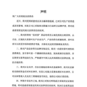 昌世茶公司日前发表声明称,公司一向倡导茶叶理性的消费理念,坚守茶叶是一个健康的饮品理念,坚决抵制非法集资、非法期货交易等违法行为,严格遵守相关法律法规,合法合规经营。“目前,公司正在有序、合法合规地处理本次造谣事件,我公司有足够充裕的资金应对本次事件,有信心有能力妥善处理好本次事件,公司全体管理人员及员工将继续坚守岗位,保持公司的正常经营。”