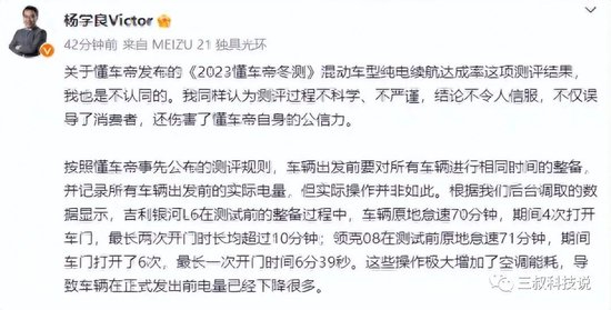吉利杨学良:我同样认为测评过程不科学、不严谨,结论不令人信服。