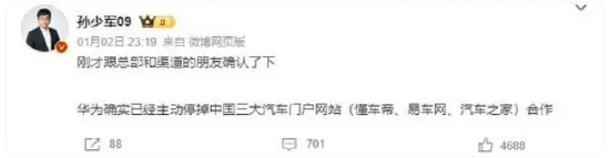 曝华为已终止与懂车帝等三车平台的合作 或自建APP