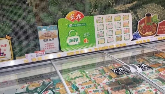 除了底料、调料热销,商超中的冷冻丸类、冷鲜牛羊肉片等冷冻产品,也是在家吃火锅不可缺少的食材。