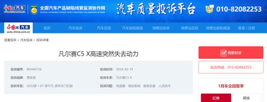 近日,中国网汽车投诉平台接到一位东风雪铁龙凡尔赛C5X车主高先生的投诉。高先生表示他驾驶该车于2024年2月14日在从齐齐哈尔出发回天津上班,以每小时120km左右速度行驶时,辆突然失去动力。该车就近被拖到吉林白城润达2S店维修,但令车主没想到的是,第二天,该车在高速公路行驶中,再次出现同样故障。高先生称该车的故障问题对其造成了极大的精神负担,同时对白城润达2S店的维修产生了不信任。
